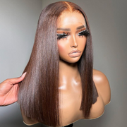 Brown 4x4/13x4 HD Lace Bob Wig Colored Bone Straight Shoulder Length Human Hair Wigs-Geeta hair - 4x4 Lace Closure / 180% / 12