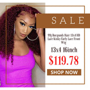 Crazy Flash Sale: 99j Burgundy Hair 13x4 HD Lace Kinky Curly Lace Front Wig - Only 2 Days