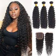 GeetaHair Deep Wave Hair 3 Bundles with 4x4 Lace Closure 100% Human Ha – Youve Store