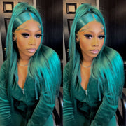 Funky Colored Wigs | Emerald Green Straight 4x4/13x4 Lace Closure/Frontal Wig Pre plucked with Baby Hair HD Transaparent Lace Wigs - 16 / 150% / 13x4 Lace Frontal