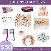 Queen's Day Gifts Package, Includes Random 3-6 Gifts:Love Hair Bands, Love Handbag, Shower Cap, Hot Comb, Wig Cap, 3D Mink Eyelashes, Elastic Headband, Clips, Edge Brush etc - 3-5 Free Gifts
