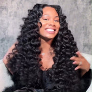 Full 300% Density Loose Bouncy Wave Glueless Wig 13x4 Lace Front Wigs Human Hair Wig Pre Plucked - 4x4 Lace / 16 / 180%