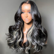 Funky Colored Wigs | Glueless 13x4/6x4.5 Money Piece Light Blonde Mix Black Body Wave Pre Cut HD Transaparent Lace Human Hair Wigs With Breathable Cap Highlights Air Wig-Geeta Hair - 3D Dome Cap 6x4.5 🔥 / Mix Black 180% / 16