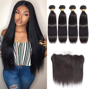 Geetahair Long Straight Hair 4 Bundles With 13x4 Lace Frontal 100% Unprocessed Human Hair No Tangles - 10 10 10 10 +10
