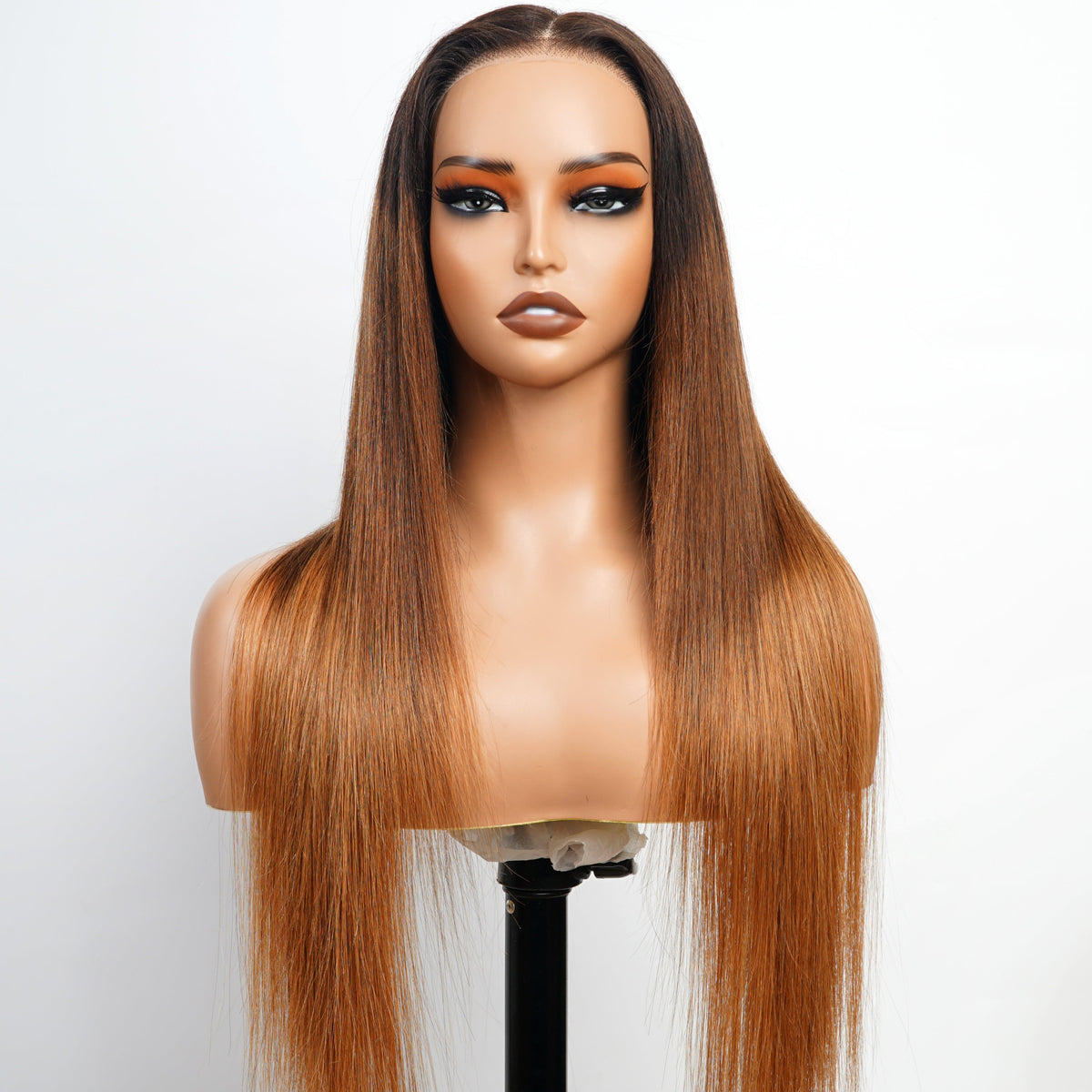 Long Straight Brown Ombre Blonde Wigs With Black Roots Human hair Wigs For Women And Girls - 180% / 7x5 Pre Cut Lace / 16