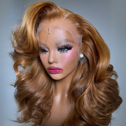 Ombre Dark Golden Blonde Colored Wigs 3D Body Wave 13x4 Transparent Lace Frontal Wig Pre Plucked 250% Density - 4x4 Lace / 16 / 180%