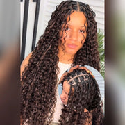 Pre Braided Wig Water Wave 13x4 Lace Front Human Hair Wigs Wear Go Boho Braided Glueless Wig - Upgrde 7x5 Lace / 16 / 180%